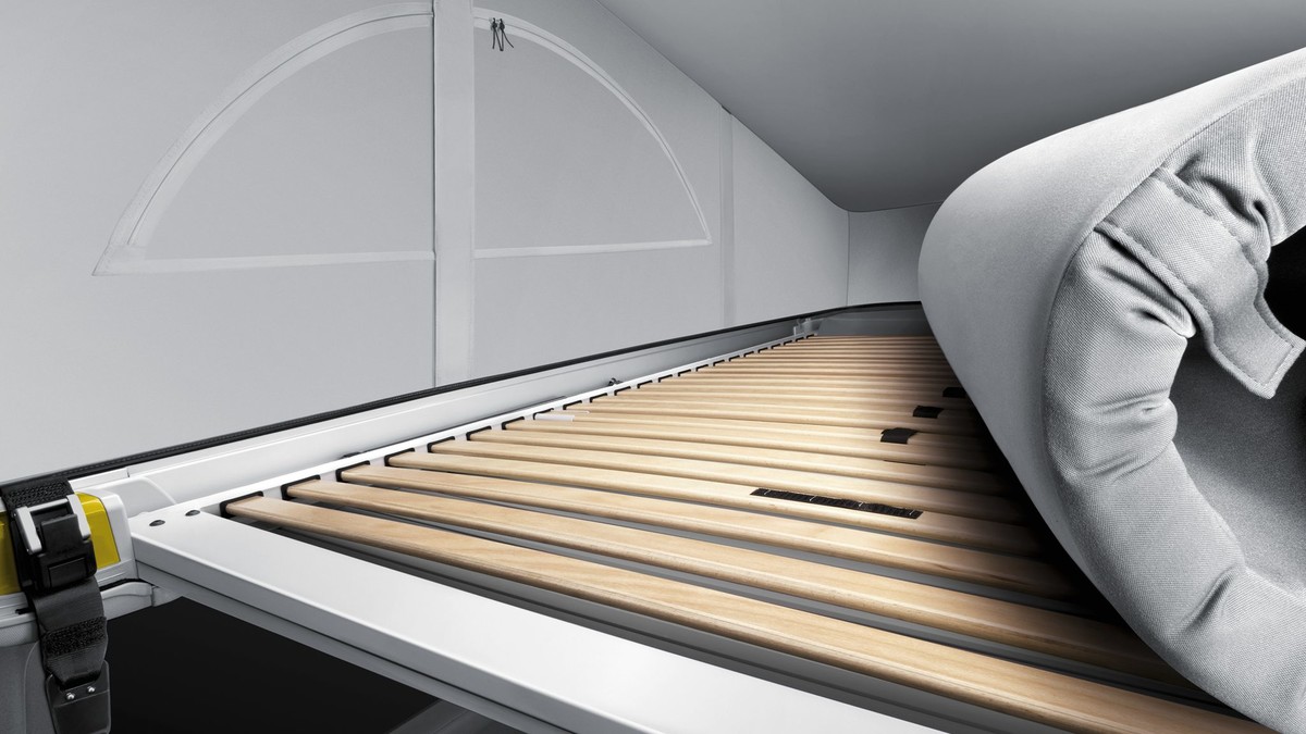 À la nuit tombée, le coin couchage du van aménagé 4 places California Coast T6 automatique Volkswagen se dévoile grâce à 2 lits double convertibles. Le premier - de 114x200 cm - est situé « en bas », dans l’espace séjour. Composé de la banquette arrière convertible couplée à une rallonge de lit intégrée, il se déplie très facilement en 2 mouvements. Il ne vous reste alors plus qu’à tirer le surmatelas fourni pour vous coucher dans un environnement aussi confortable que chez vous. A la différence que « chez vous » n’est pas forcément au pied d’un lac ou au cœur d’une forêt ! Le second lit double – 120x200 cm – est « à l’étage », et se révèle en levant le toit escamotable. Il bénéficie d’un sommier et d’un matelas de qualité, sur lequel vous pourrez vous tenir en position assise. Une manière comme une autre de contempler, par les « fenêtres » à moustiquaires intégrées, l’aube se lever sur le « nightspot » de rêve que vous n’aurez manqué de dénicher la veille ! Tous les couchages possèdent des veilleuses dédiées et des prises 12V à proximité, et l’occultation de l’habitacle peut être totale grâce aux stores intégrés.